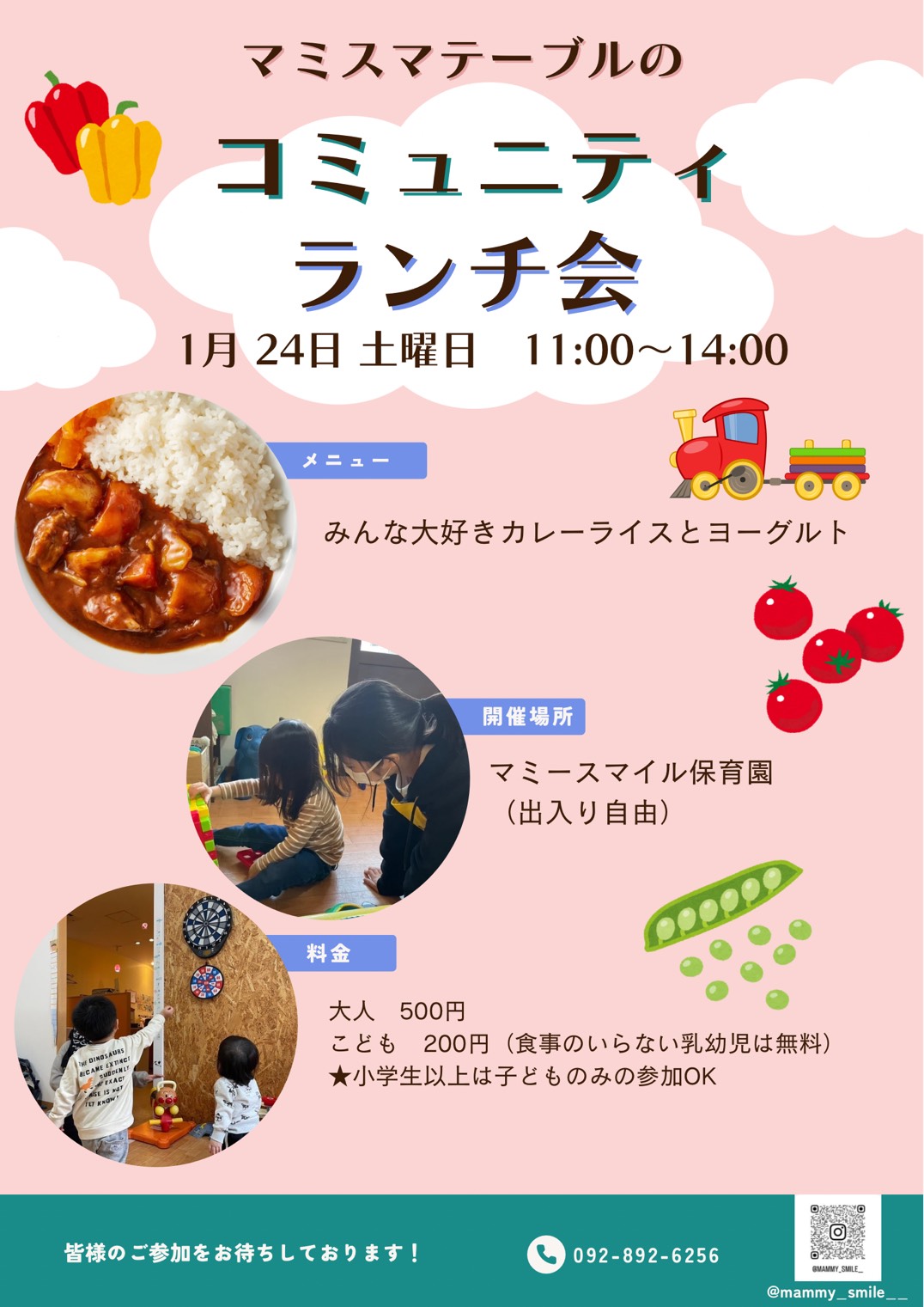 次回は1/24(土) 毎月第4土曜日11~14時 こども食堂 開催